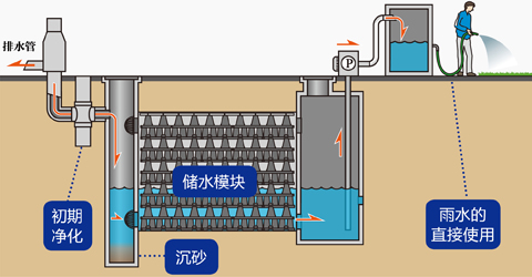 雨水回用系統(tǒng),就是將雨水收集后,按照不同的需求對收集的雨水進行處理后達到符合設計使用標準的系統(tǒng)。目前多數(shù)雨水回用系統(tǒng),如雨博士回用系統(tǒng),是由截污掛籃裝置、棄流過濾裝置、蓄水系統(tǒng)、凈化系統(tǒng)組成。