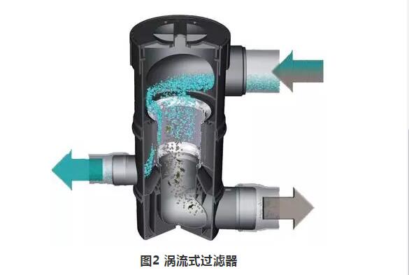 主要針對大顆粒物質(zhì),這些物質(zhì)常攜帶和滋生細(xì)菌。經(jīng)過過濾和曝氧,可大大減少進(jìn)入雨水罐的細(xì)菌,保護(hù)雨水罐的水質(zhì)。圖2所示的渦流式過濾器,足以應(yīng)付200平方米的屋面集雨。該過濾器,通常安裝在管道中,能夠?qū)⒁粓鼋邓?5%收取。過濾器外殼由聚丙烯制成,濾芯由不銹鋼制成。過濾器的網(wǎng)格尺寸,為0.28毫米(280微米)。濾芯,一年需要清洗3次左右。
