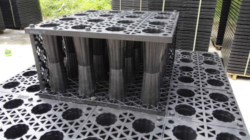 使用的較早,價(jià)格也較便宜。一般承載力在25噸每平米,此類模塊一般用于小型工程。
