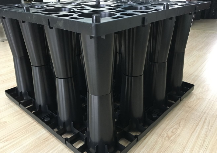 雨水收集系統(tǒng)中由pp模塊制成的蓄水池具有穩(wěn)定的獨(dú)特空間結(jié)構(gòu),具有很好的承載能力,能保證車輛在其上正常通行。